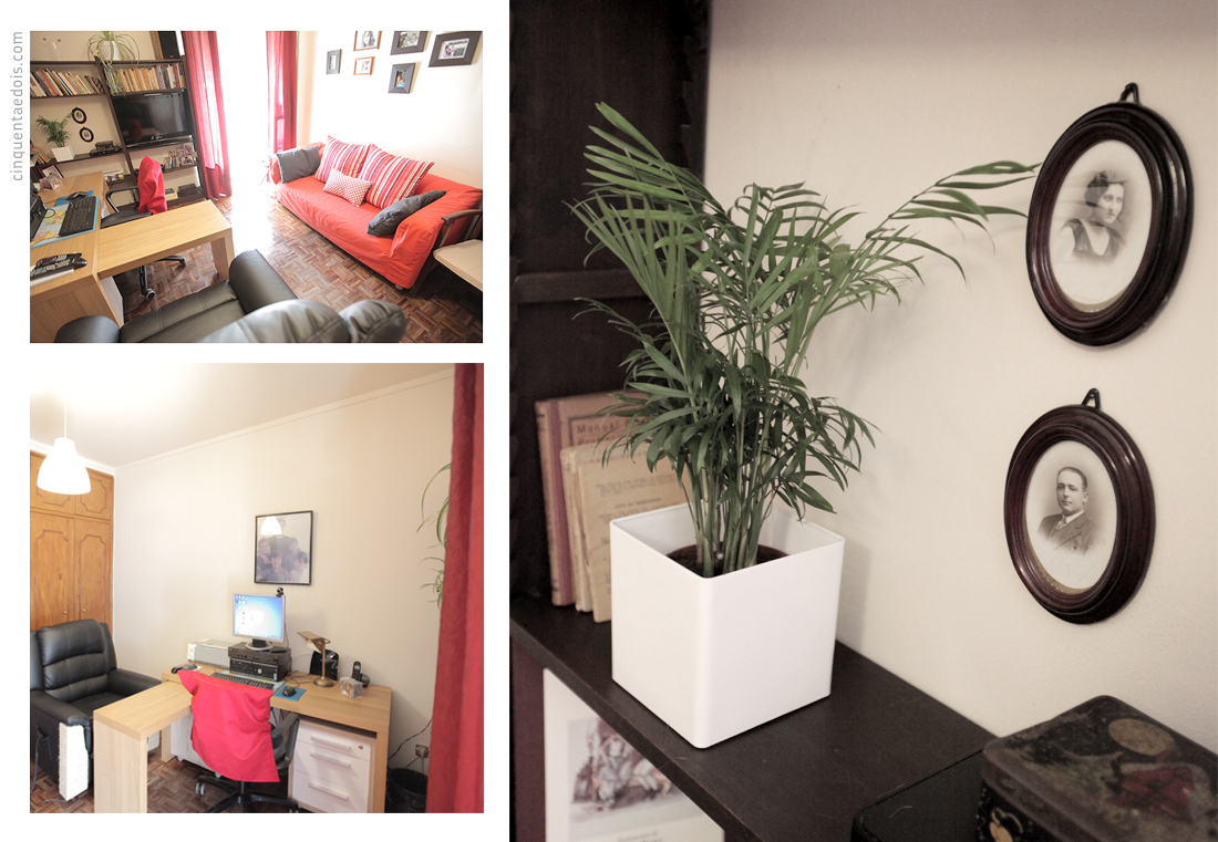 Não foi preciso comprar móveis novos; usámos o que existia e restaurámos um armário bem velhinho (mas com uma boa madeira) que estava mal aproveitado noutra divisão da casa – na minha opinião, um grande feito! Outro dos maiores feitos foi termos aproveitado um pequeno sofá da Ikea para que a Helena pudesse agora sentar convenientemente as suas visitas. A este, acrescentámos o conjunto de almofadas que comprámos na Leroy Merlin (deixem-me dizer-vos que estão com coleções giríssimas!).