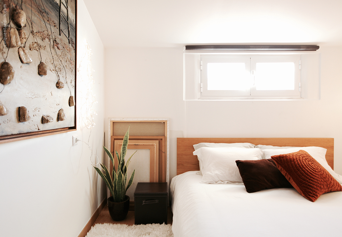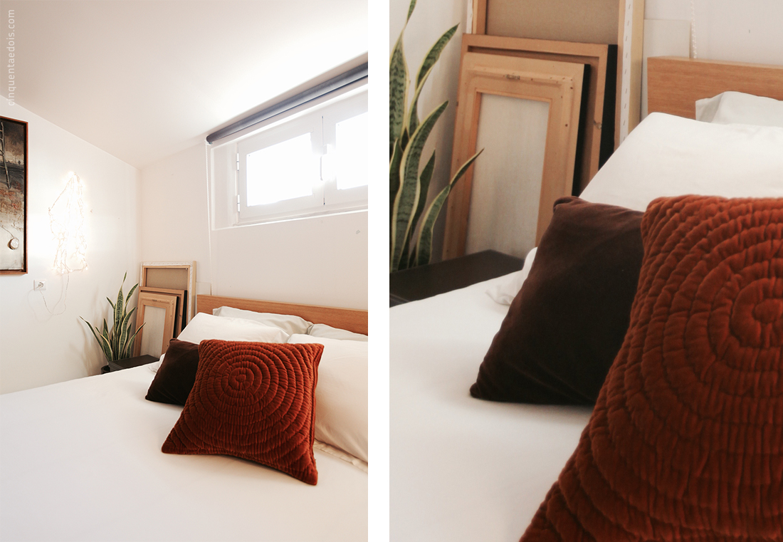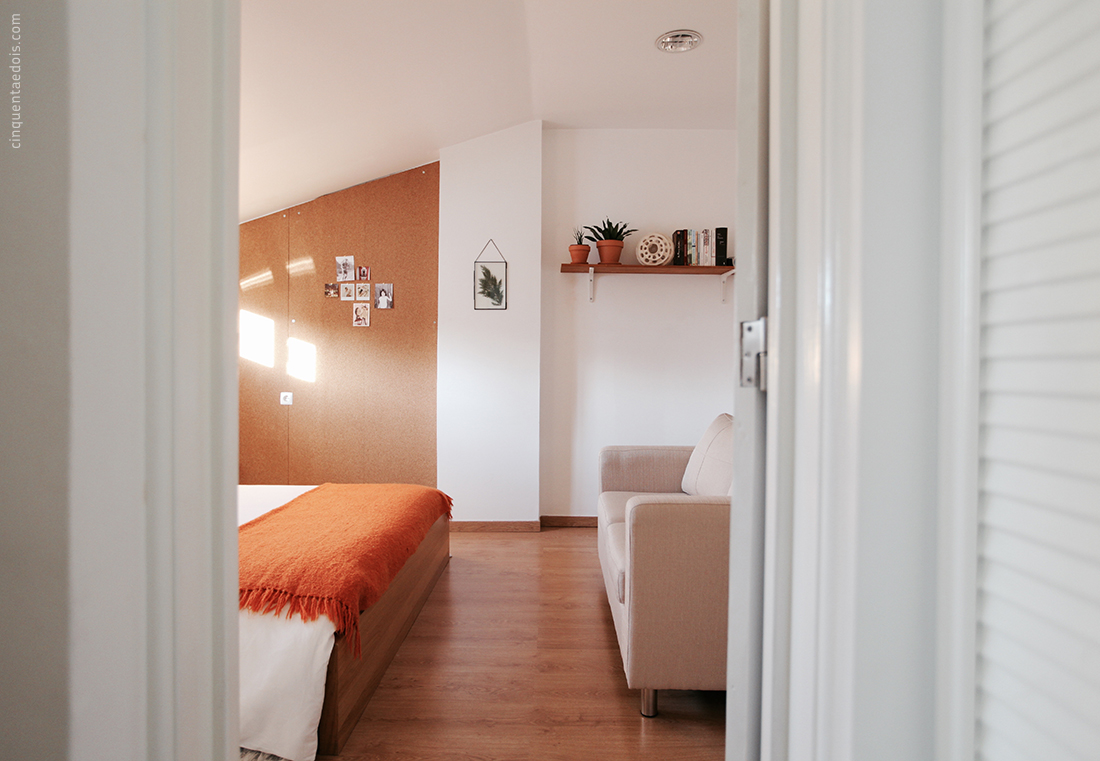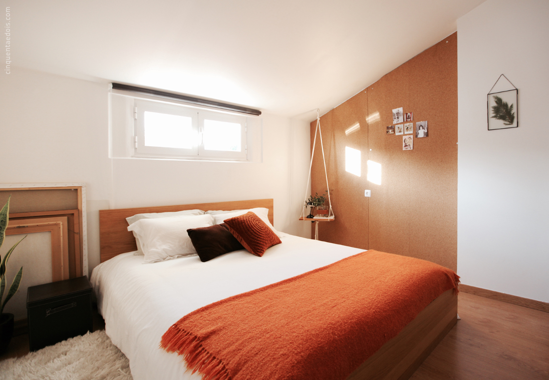 Pela sua simplicidade, o nosso quarto foi o primeiro a ficar praticamente concluído. Ainda faltam uns pormenores, mas já é a cara daquilo que imaginei que poderia ser: um espaço tranquilo, amplo, relaxante, luminoso, simples e descontraído, ao estilo boho.