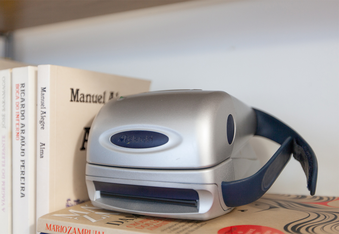 Há por aqui objetos que nos foram oferecidos quando nos casámos; há objetos de artistas, ceramistas e designers (como o candeeiro, o prato, a figura feminina); há uma máquina de projetar que comprámos para passar os filmes antigos em película, dos meus pais; há a minha polaroid com mais de vinte anos, um rádio e uma máquina de calcular antigos; e depois há outros objetos recentes (da Ikea, da La Redoute, da Anna Westerlund) e uma jarra que já foi um frasco de massa (cuja tampa se estragou e que não deitamos fora porque faz parte de uma prenda de casamento).